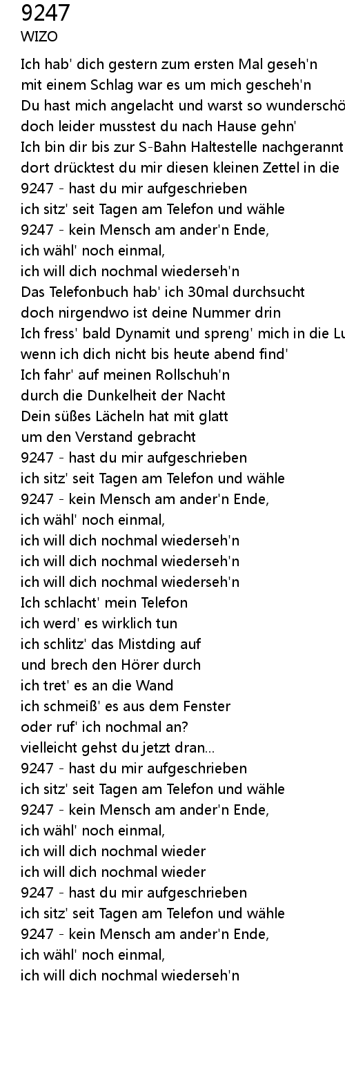 | Das Telefonbuch hab' ich 30mal durchsucht | |