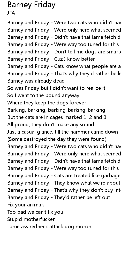 Barney and Friday - Cats are treated like garbage |