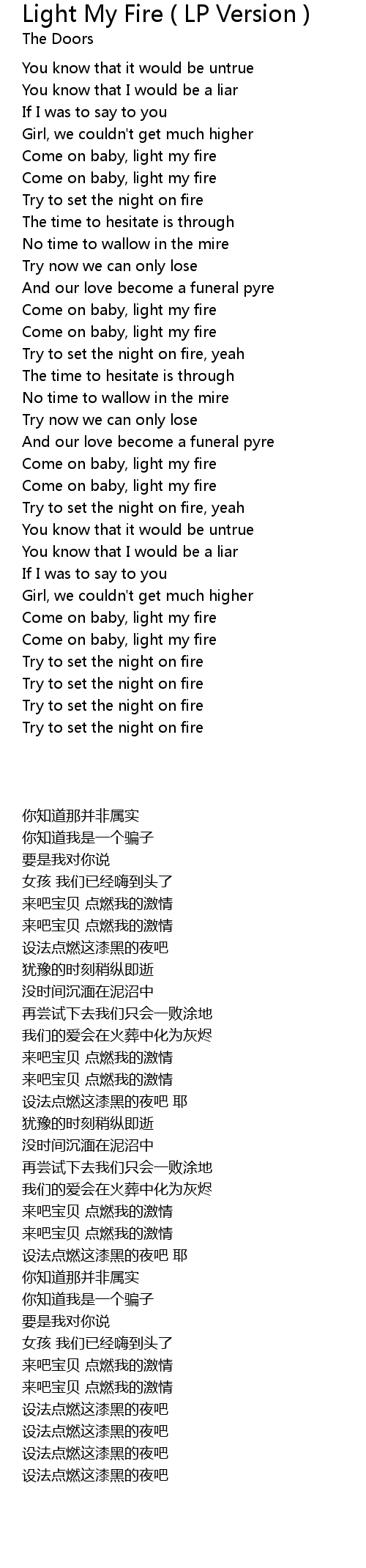 Come on baby, light my fire |