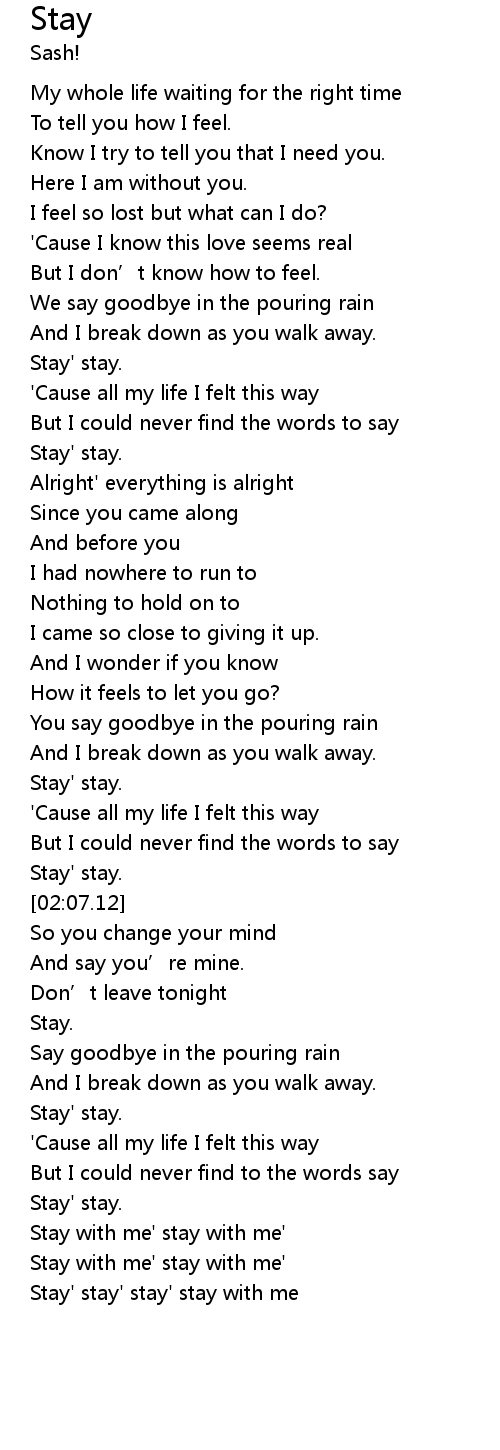 | [03:19.66] | Stay' stay' stay' stay with me |