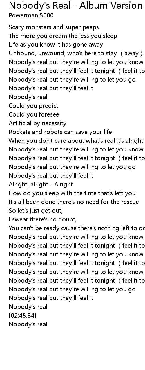 | [02:32.46] | Nobody' s real but they' ll feel it |