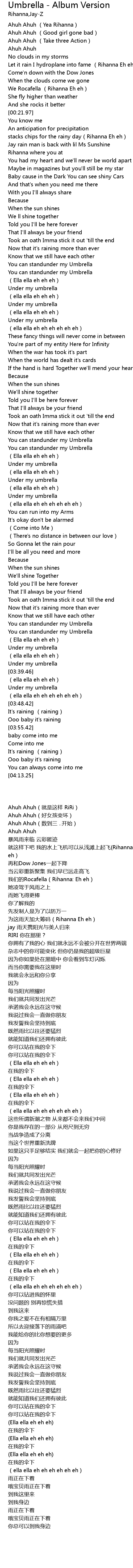 | [00:25.79] | 为这雨天加大筹码(Rihanna Eh eh) |