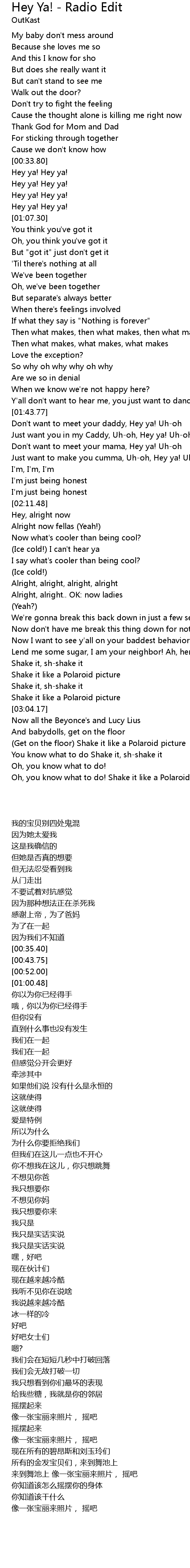 Just want you in my Caddy, Uh-oh, Hey ya! Uh-oh |