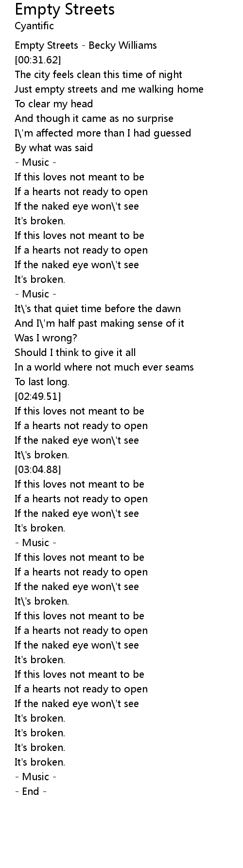 Empty Streets - Becky Williams |