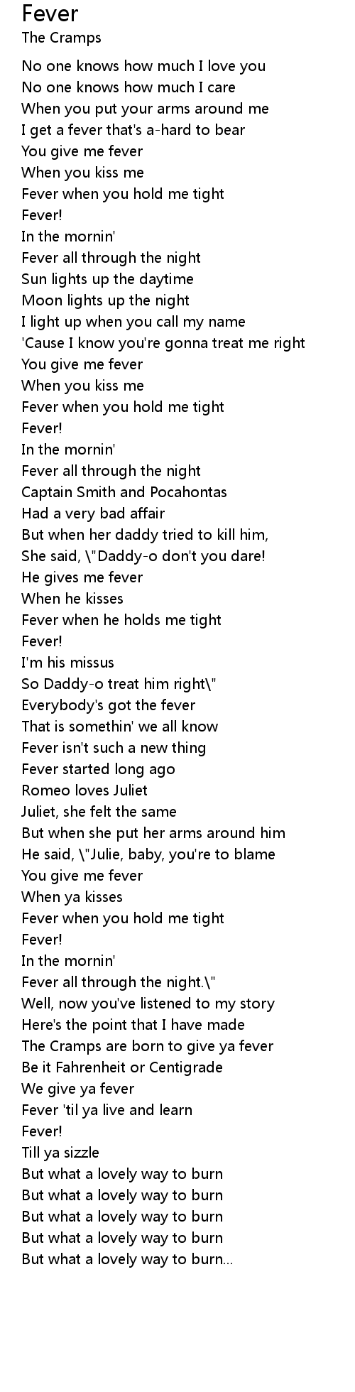 Fever all through the night.\" |