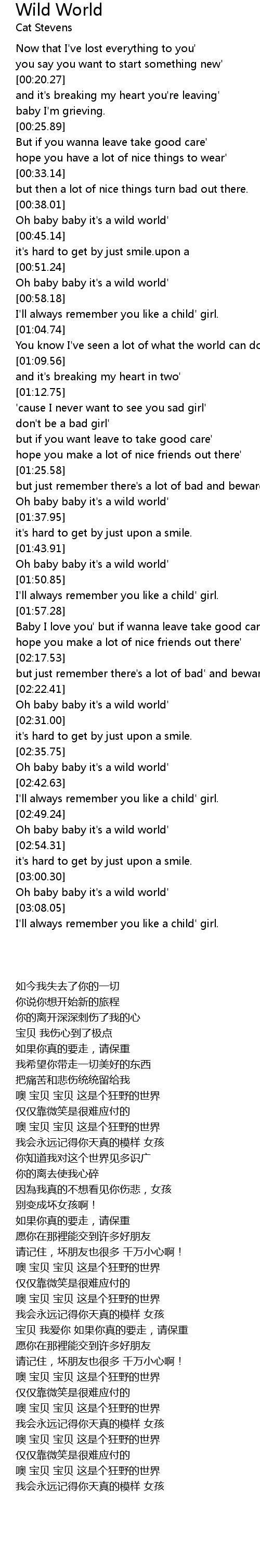 Oh baby baby it's a wild world' |