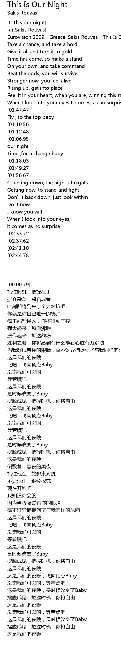 | [00:00.79] | Eurovision 2009 Greece: Sakis Rouvas This Is Our Night |
