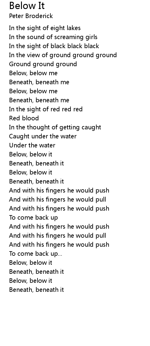 Beneath, beneath it |