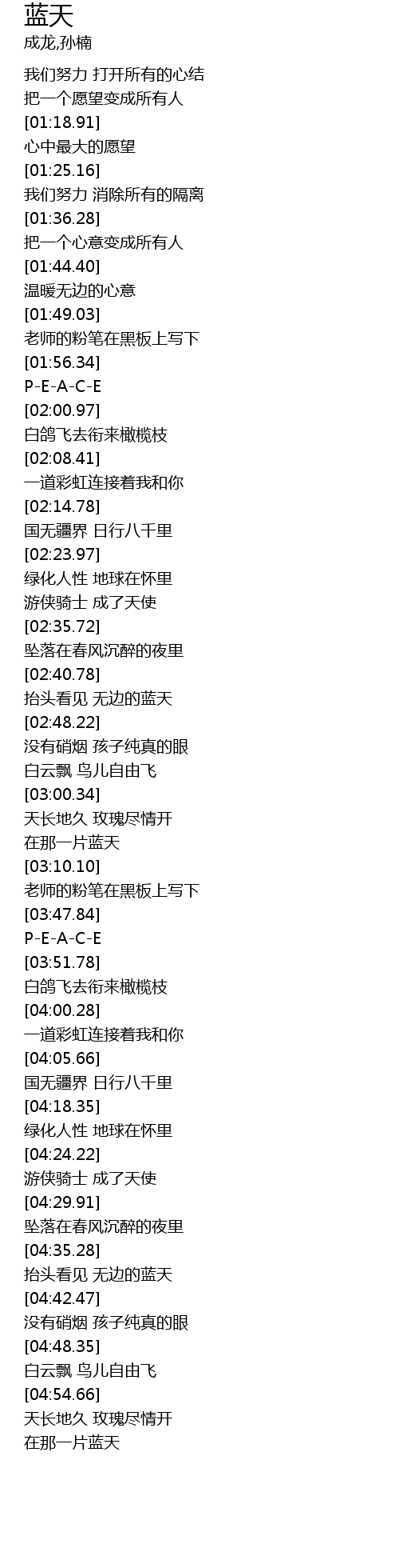 | [02:42.54] | 抬头看见 无边的蓝天 |