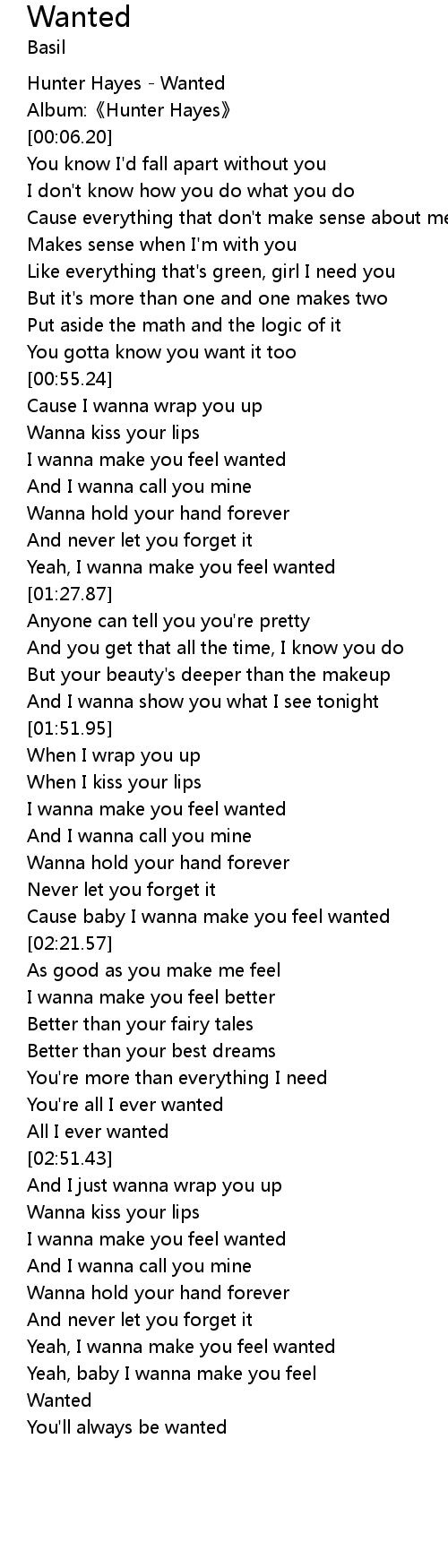 | [02:14.82] | Cause baby I wanna make you feel wanted |