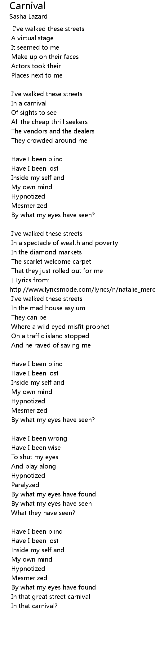 [ Lyrics from: http://www.lyricsmode.com/lyrics/n/natalie_merchant/carnival.html ]