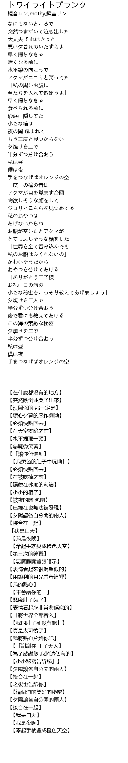 | [04:22.42] | 【牽起手就變成橙色天空】 |