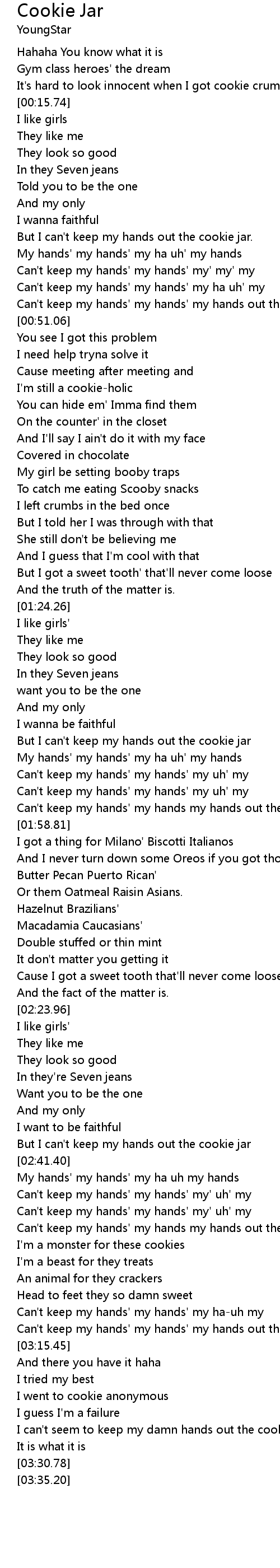 Can't keep my hands' my hands my hands out the cookie jar. |