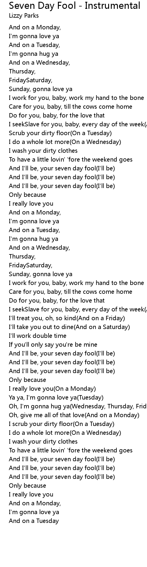 Seven Day Fool - Instrumental 歌词