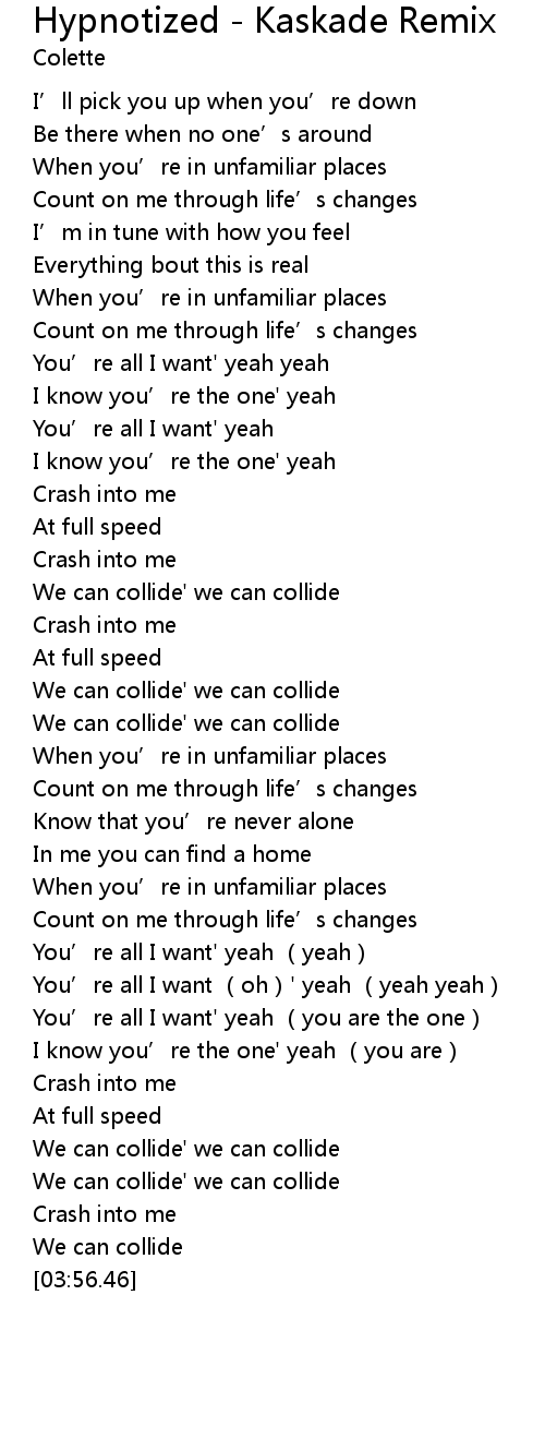 | 歌曲 | Hypnotized - Kaskade Remix |