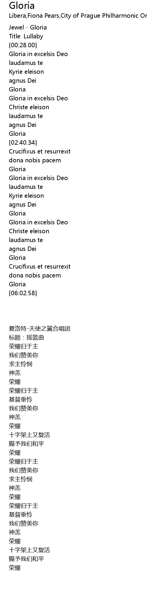 | [01:46.65] | Gloria in excelsis Deo |