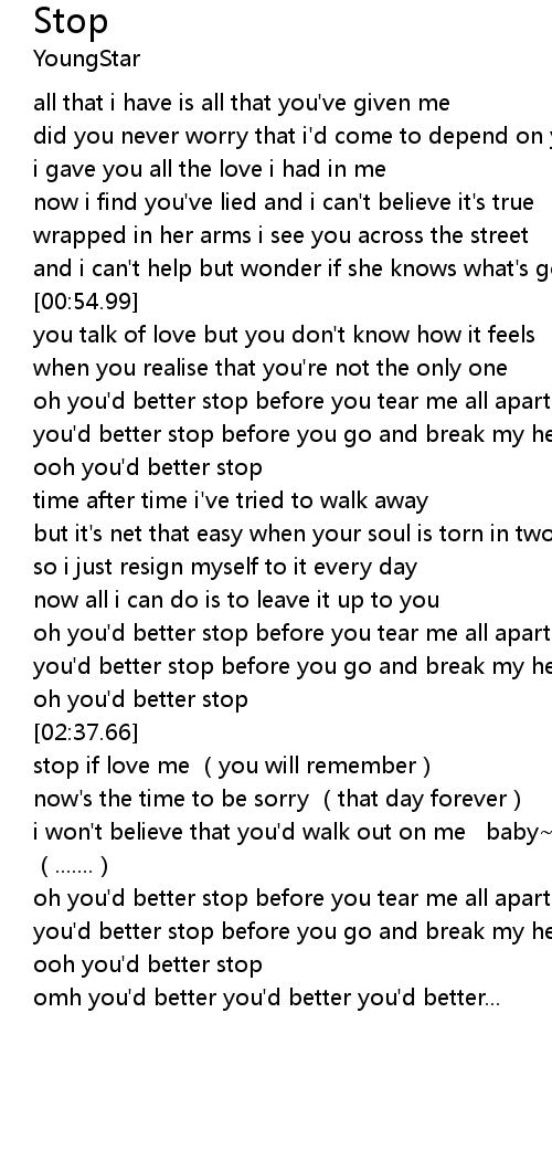| [02:23.19] | you' d better stop before you go and break my heart |