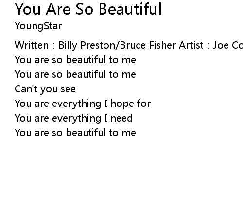 | 歌曲 | You Are So Beautiful |