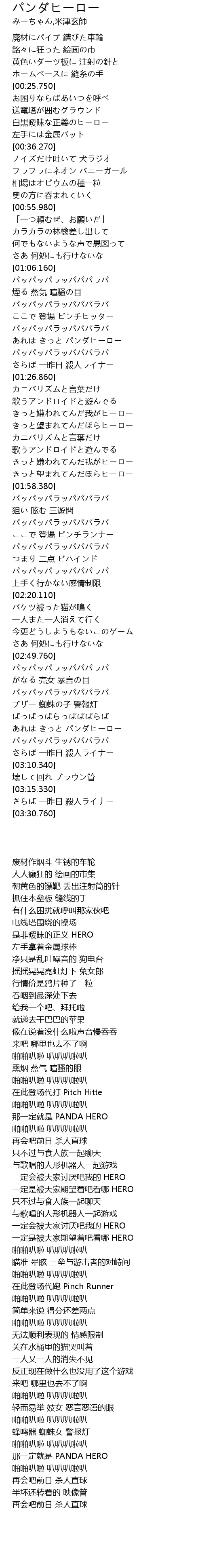 | [01:19.310] | あれは きっと パンダヒーロー |