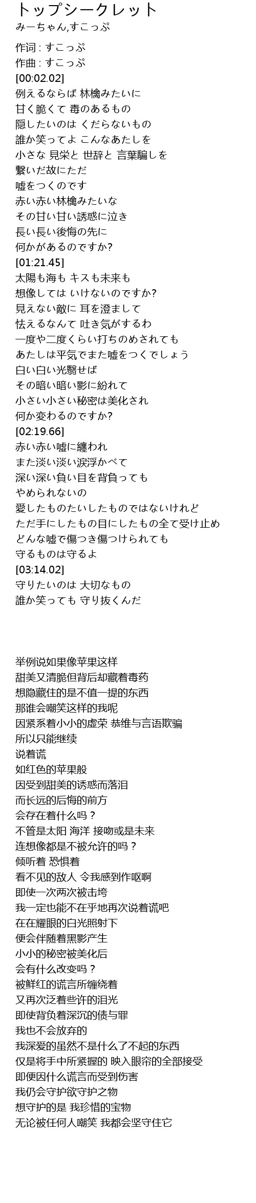 | [02:11.12] | 小さい小さい秘密は美化され |