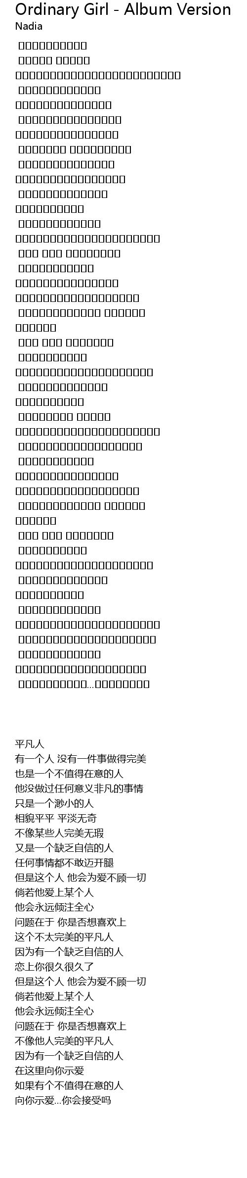 | 歌曲 | Ordinary Girl - Album Version |