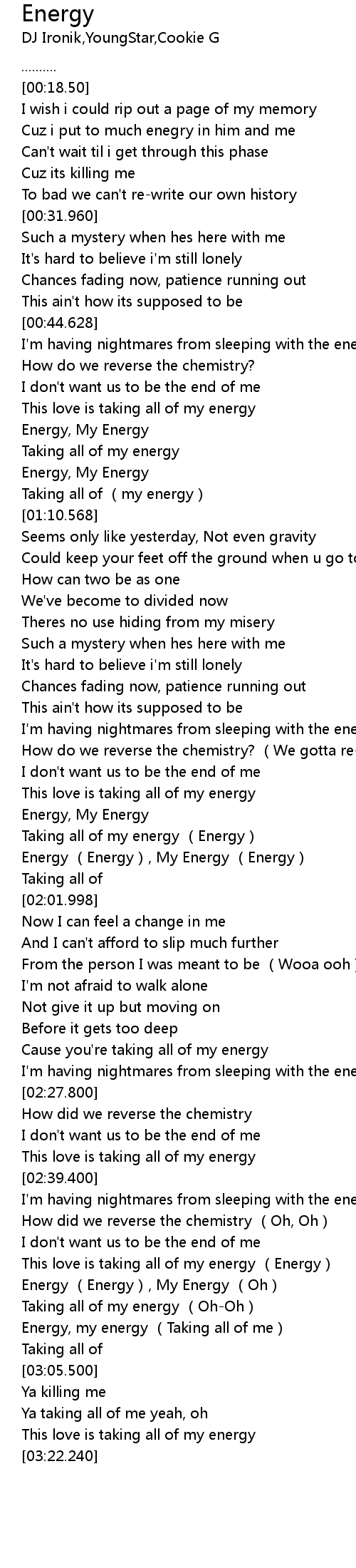 | [01:56.698] | Energy (Energy), My Energy (Energy) |