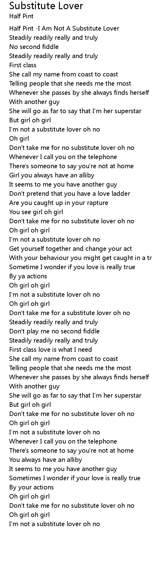 I'm not a substitute lover oh no |