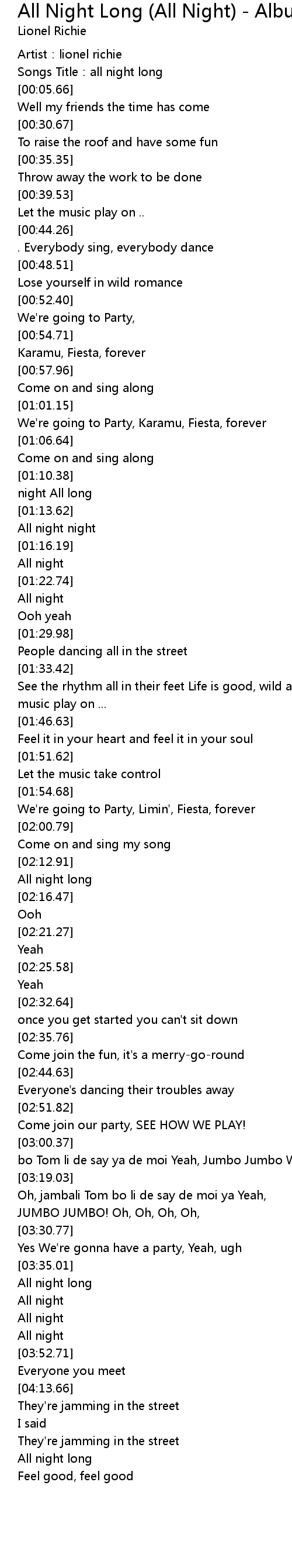| [00:03.11] | Songs Title: all night long |