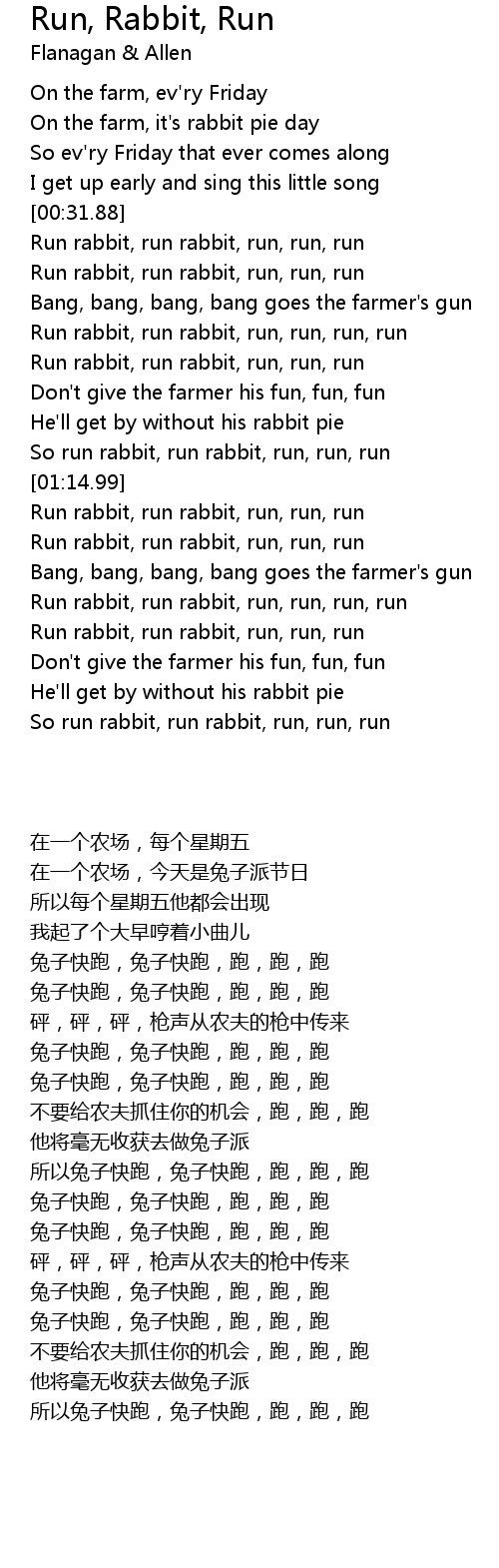 So run rabbit, run rabbit, run, run, run |