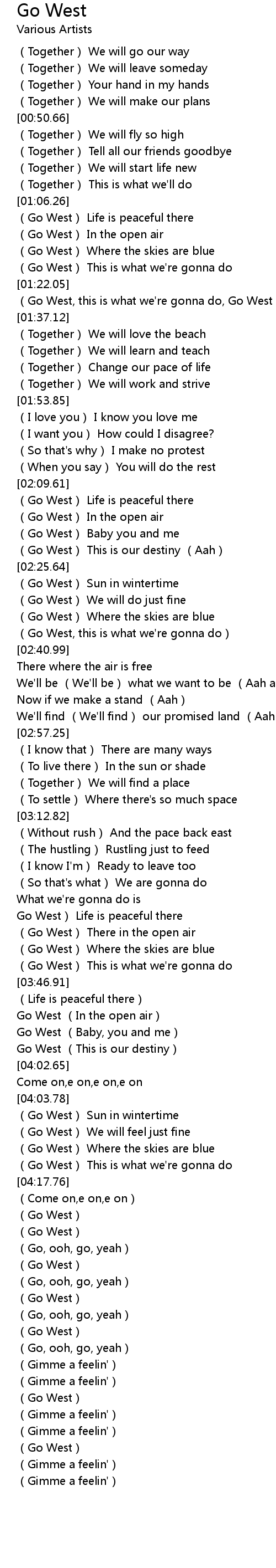 | [04:14.04] | (Go West) This is what we're gonna do |