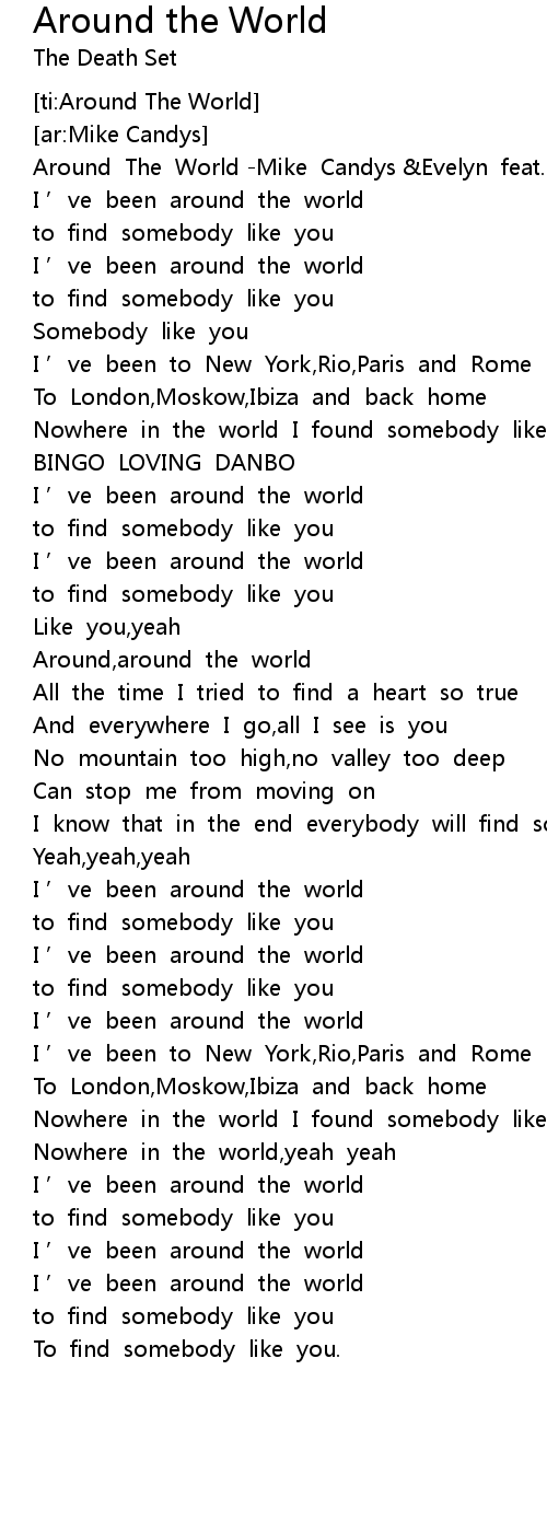 | [00:00.47] | Around The World -Mike Candys &Evelyn feat.David Deen |
