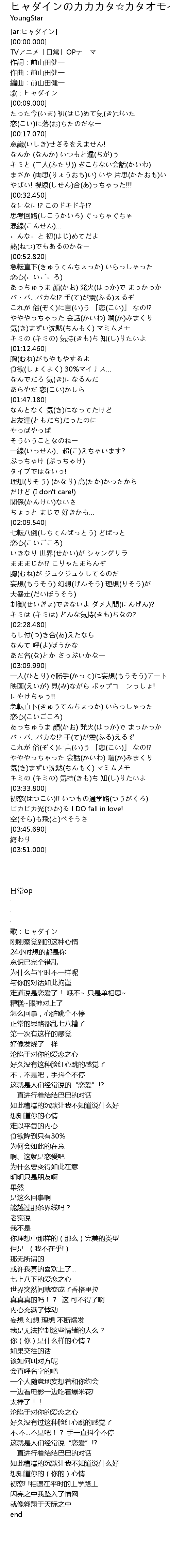 | [01:04.400] | やややっちゃった 会話(かいわ) 噛(か)みまくり |