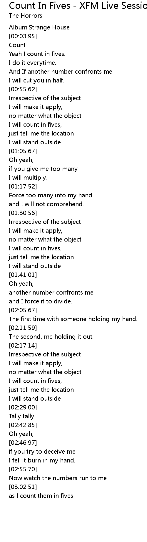 Count In Fives - XFM Live Session Version 歌词