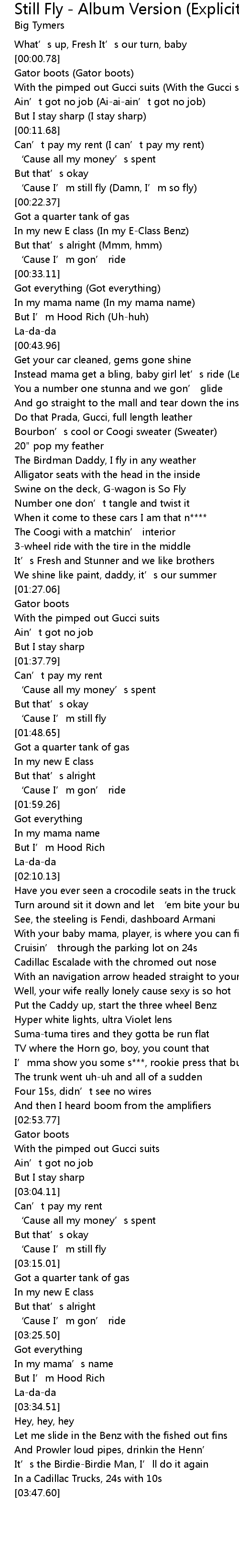 | 歌曲 | Still Fly - Album Version (Explicit) |