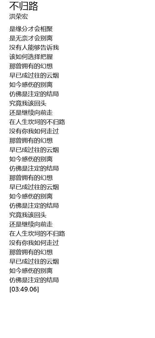 | [03:11.27] | 在人生坎坷的不归路 |