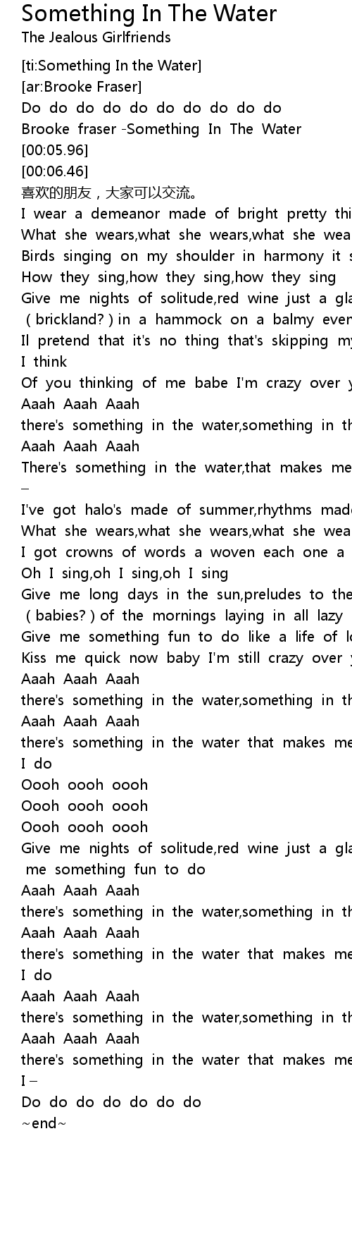 | [00:04.21] | Brooke fraser -Something In The Water |
