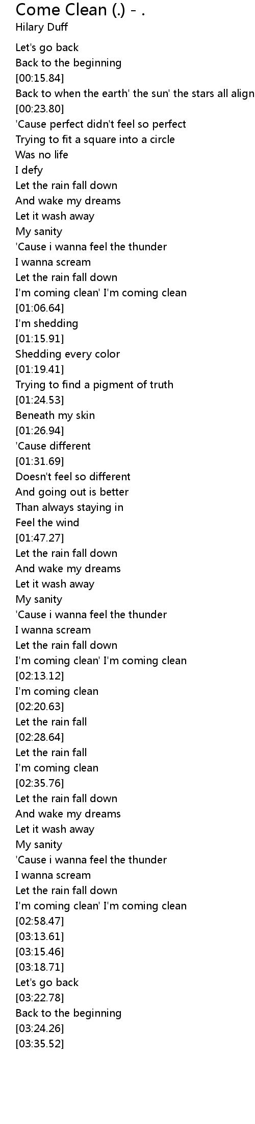 I'm coming clean' I'm coming clean |