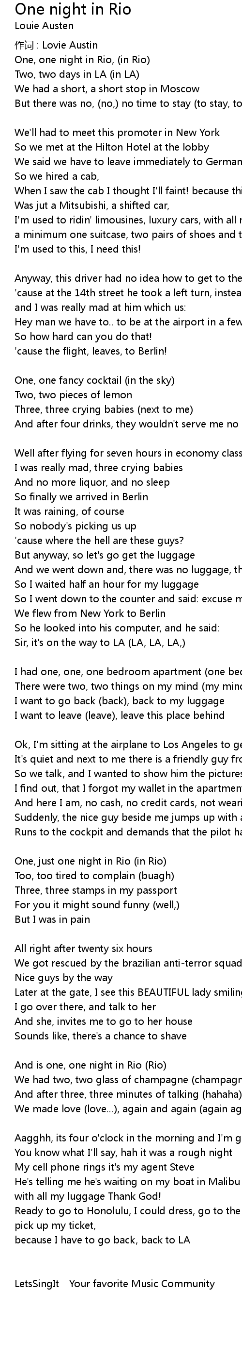 | One, one night in Rio, (in Rio) | |