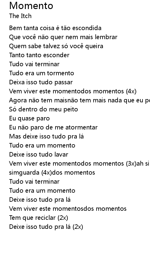 | Vem viver este momentodos momentos (3x)ah sim guarda (2x)para sempre sempre simguarda (4x)dos momentos | |