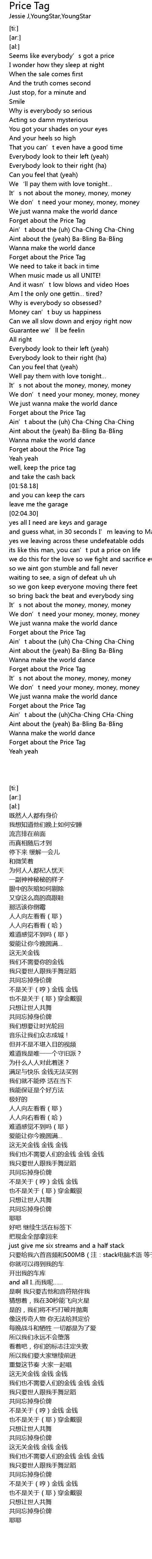 | [01:41.71] | Forget about the Price Tag |