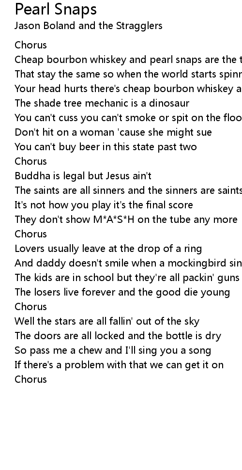 Cheap bourbon whiskey and pearl snaps are the two things |