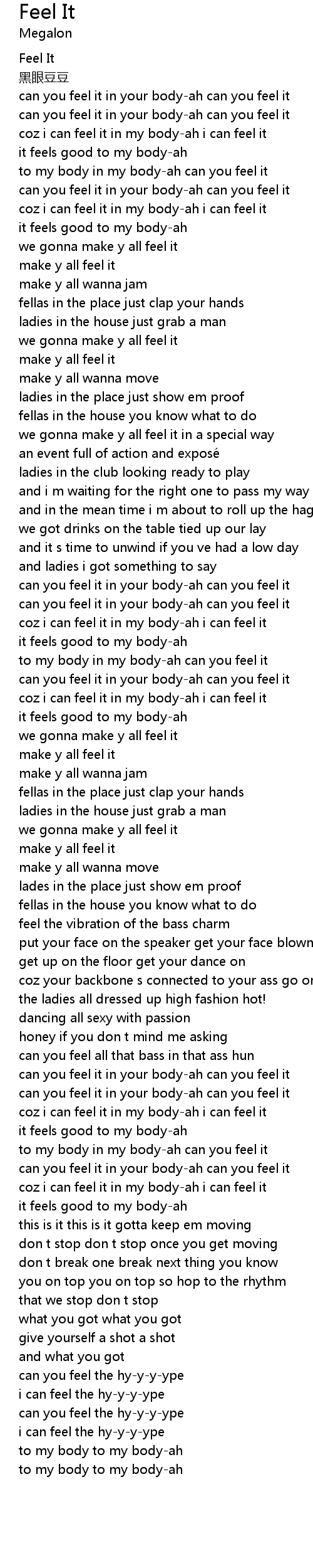 | [00:25.20] | to my body in my bodyah can you feel it |