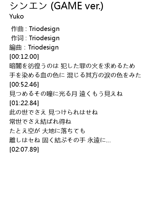 | [00:14.52] | 暗闇を彷徨うのは 犯した罪の火を求めるため |