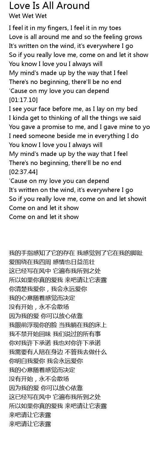 Love is all around me and so the feeling grows |