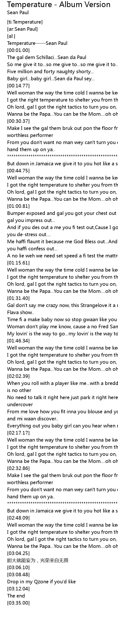 | [00:42.67] | But down in Jamaica we give it to you hot like a sauna.. |
