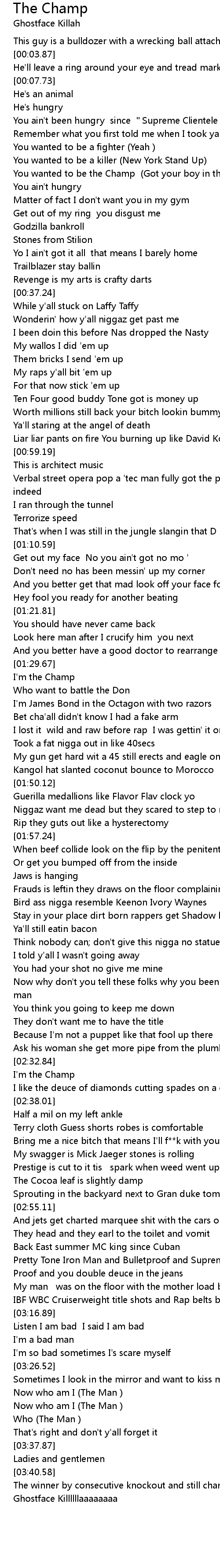 | [03:54.02] | Ghostface Killllllaaaaaaaa |