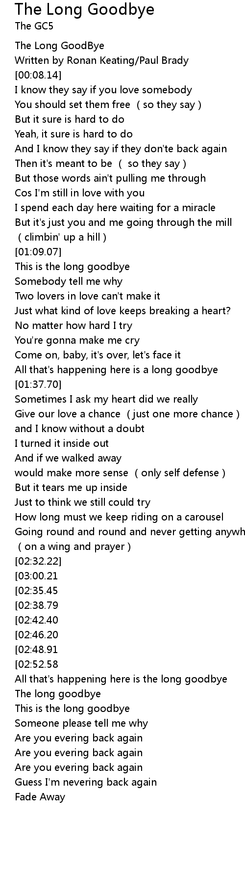 | [03:42.84] | The long goodbye |