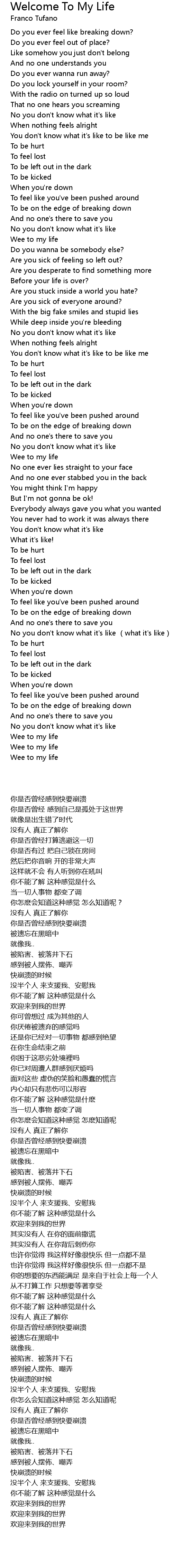 | 歌曲 | Welcome To My Life |