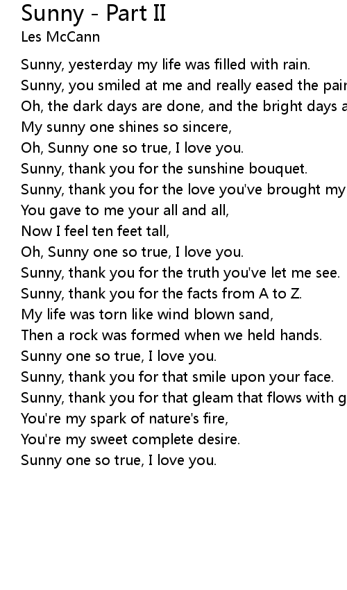 Sunny - Part II 歌词
