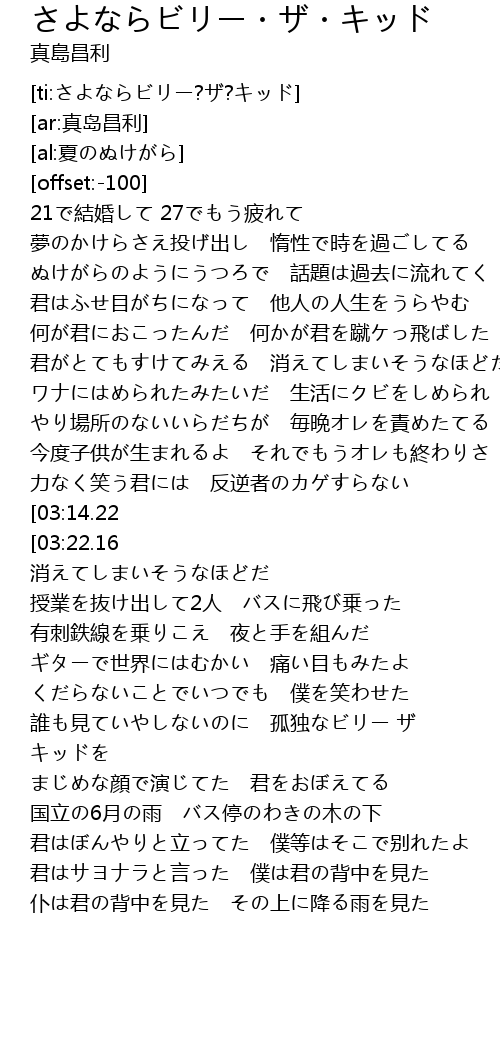 [02:21.95] 誰も見ていやしないのに 孤独なビリー ザ キッドを
